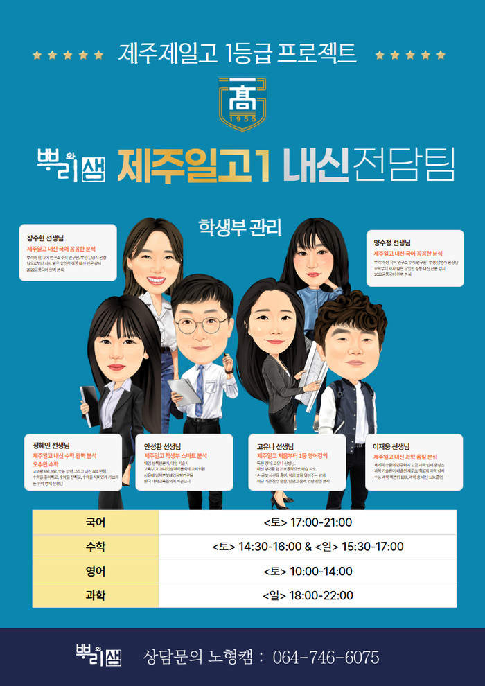 제주일고 1학년 내신 전담팀 개강 3월 7일 상담 및 문의 : 노형캠 데스크 064-746-6075