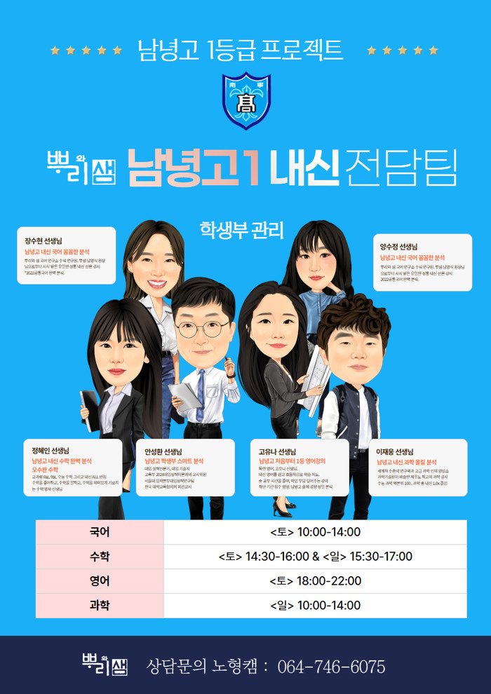 남녕고 내신 전담팀 3월7일 개강 합니다. 상담문의 : 노형 데스크 064-746-6075
