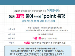 재웅샘의 물리 화학 1POINT 특강상담 및 문의 : 노형 데스크 064-746-6075