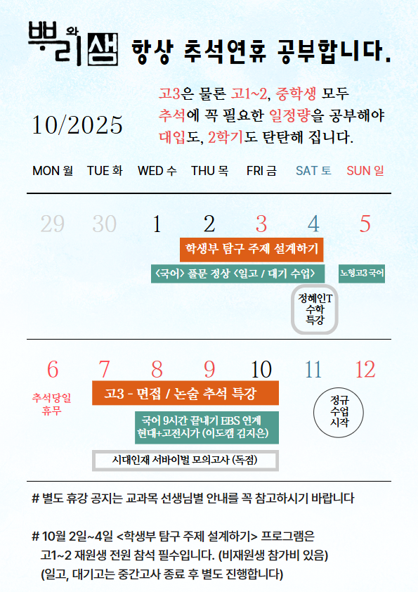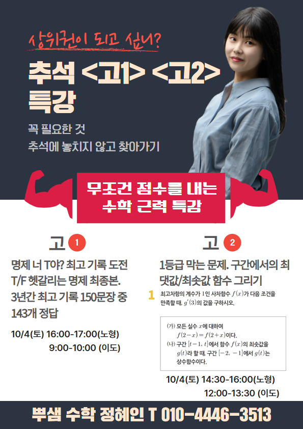 추석 특강 신청 안내 받습니다 (신청 후 개별 시간 선택합니다)