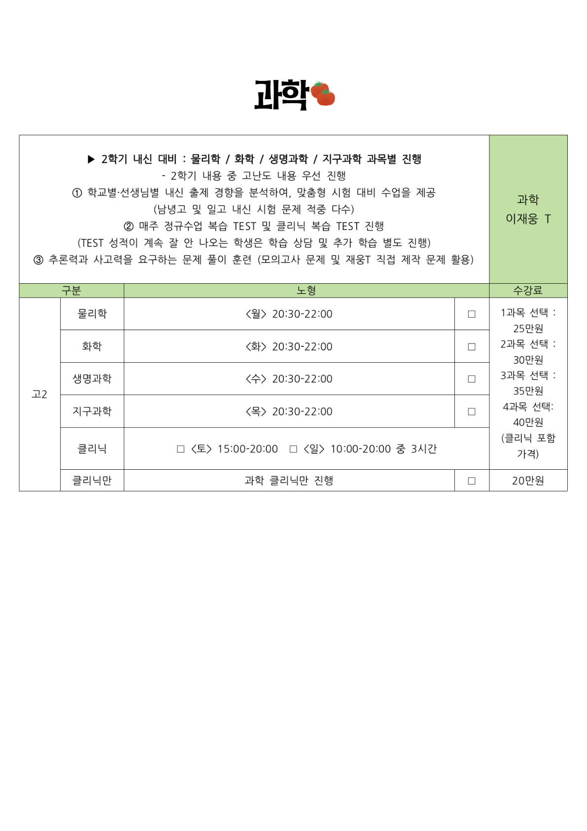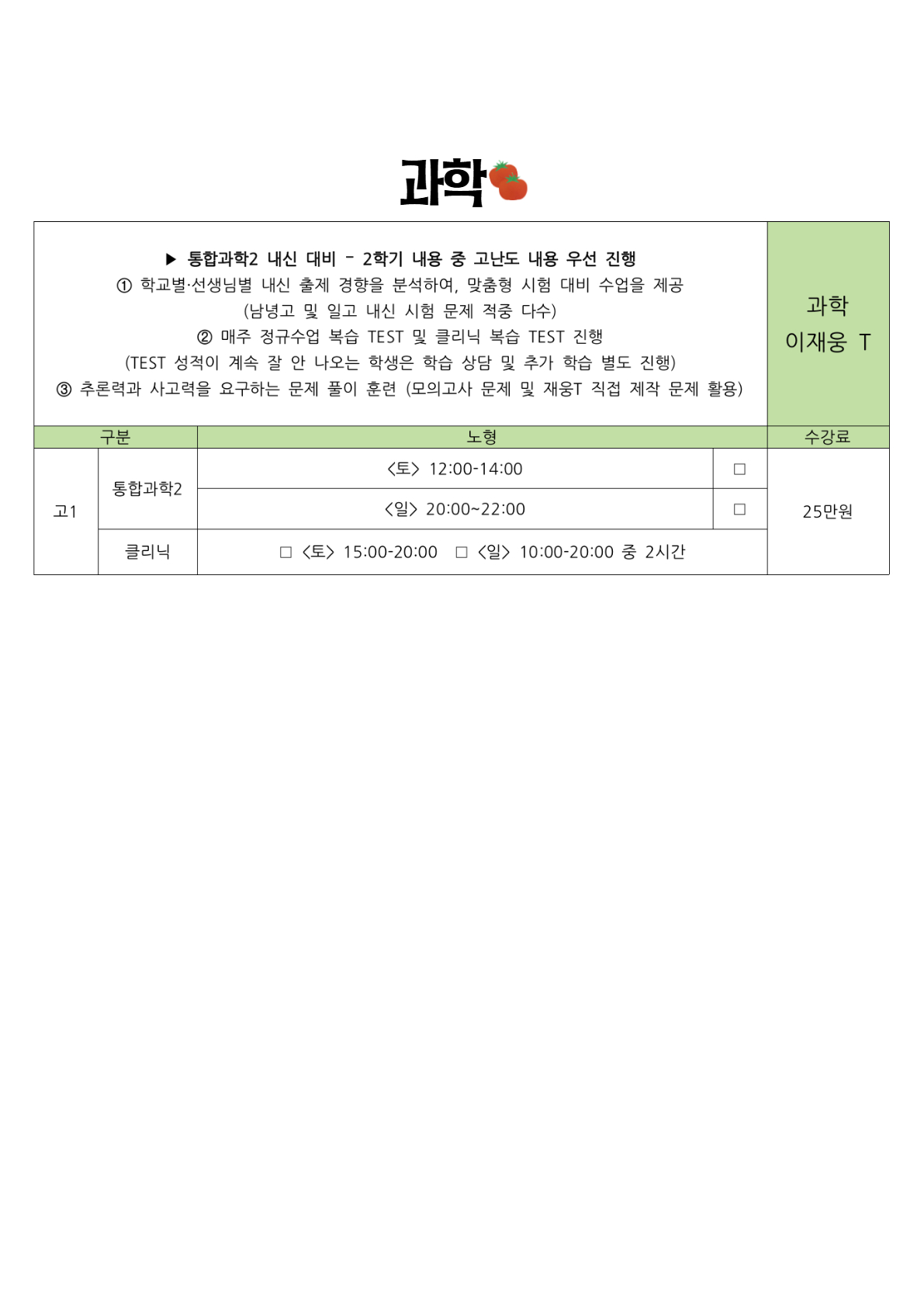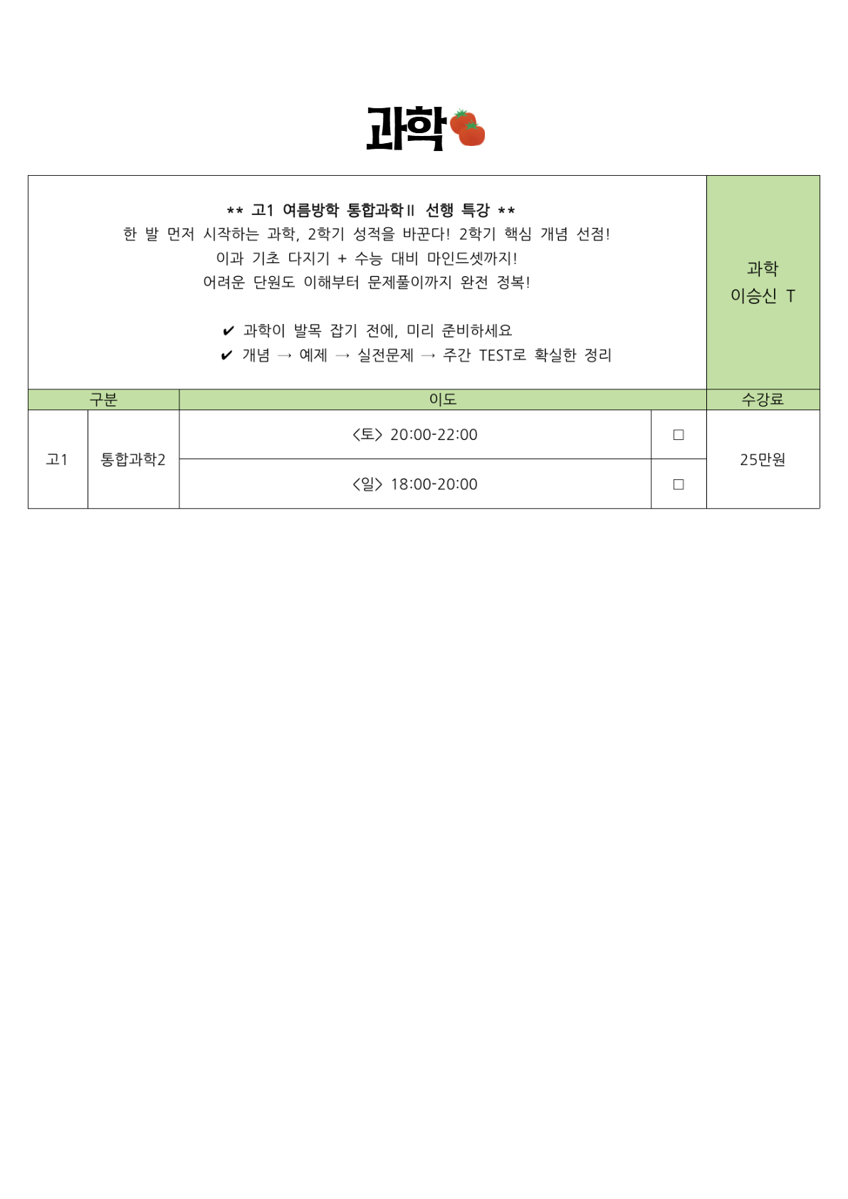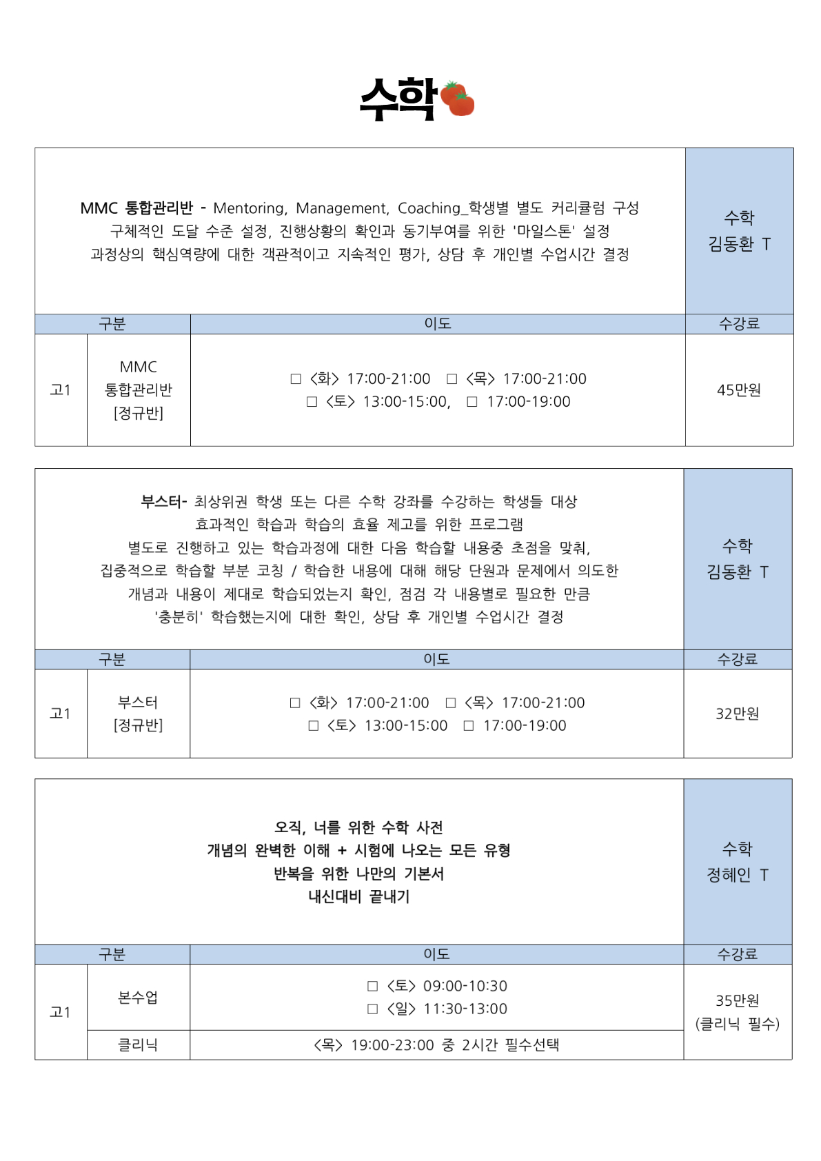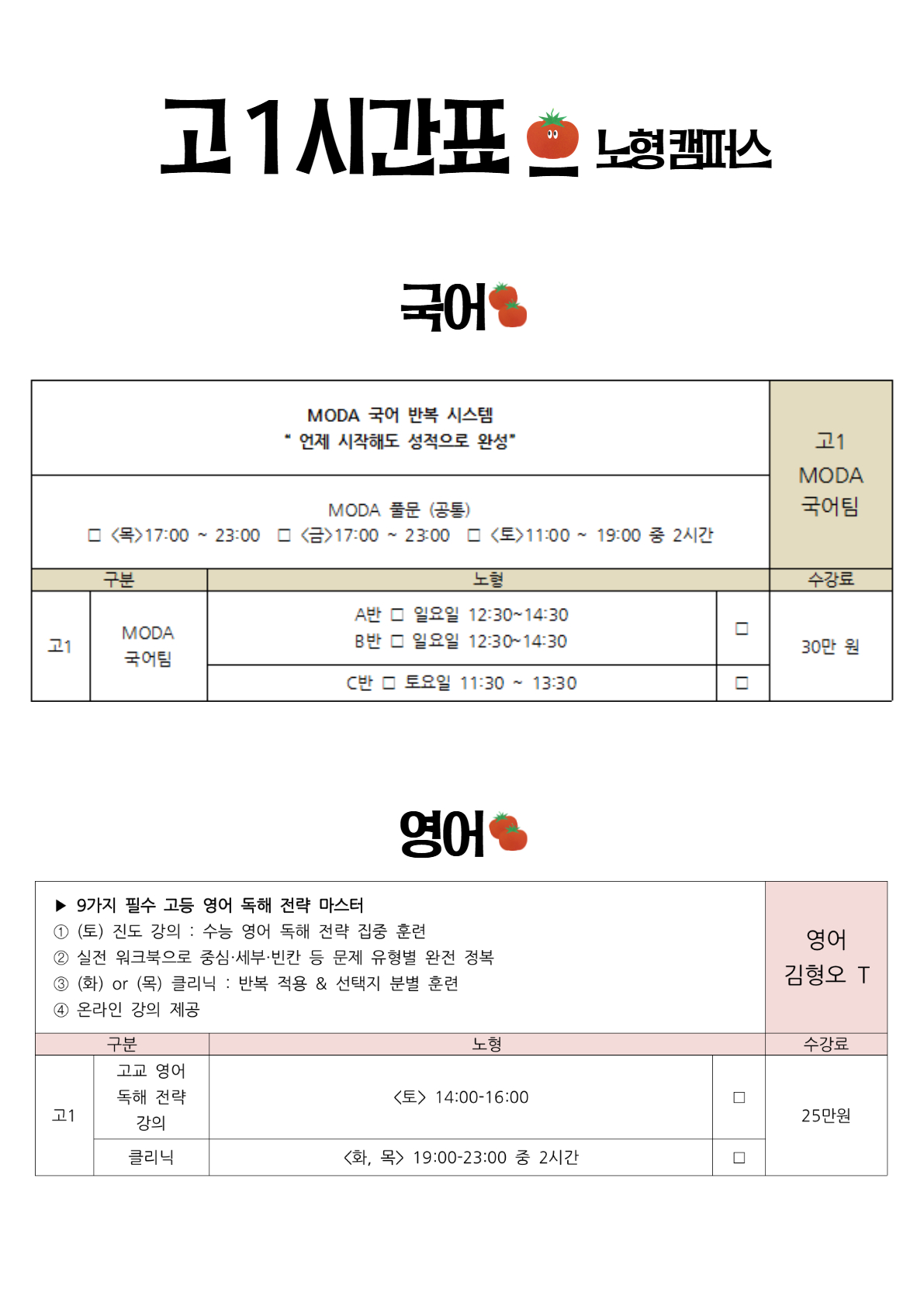 2025년 여름방학 고등 시간표 (노형캠 + 이도캠 순)