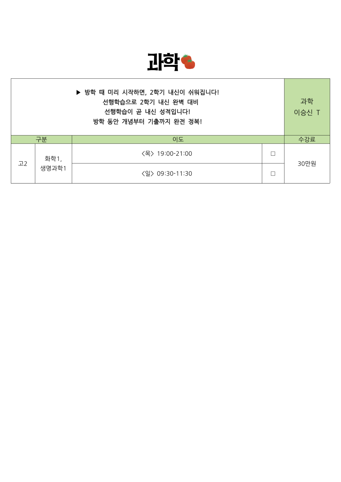 예비고1 수행평가대비